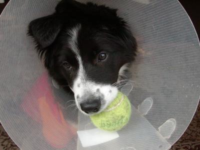 Von wegen auf ihr Bällchen hat sie trotz allem nicht verzichtet. Es hat zwar etwas gedauert bis sie den Ball trotz Trichter aufheben konnte…. aber es ging!